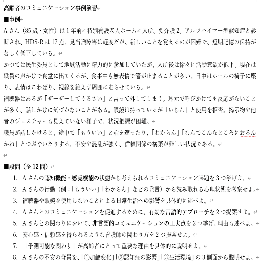 老年看護学Ⅰ(第11回)高齢者のコミュニケーション<看護教員向け 授業案+学生用資料 Wordファイル>|看護教員の図書館