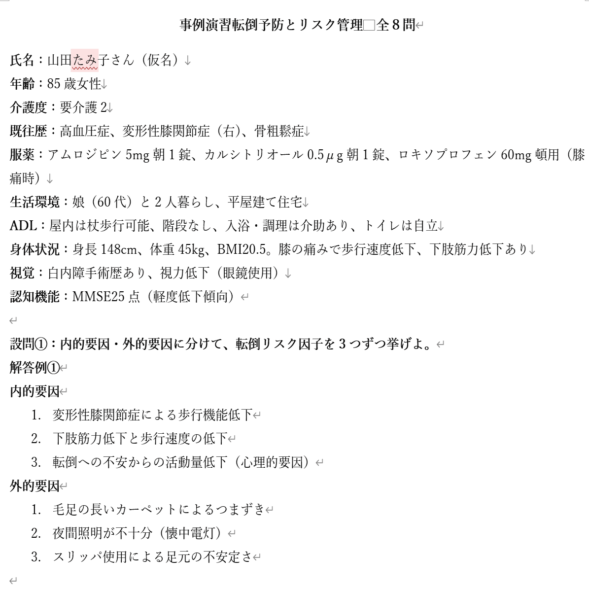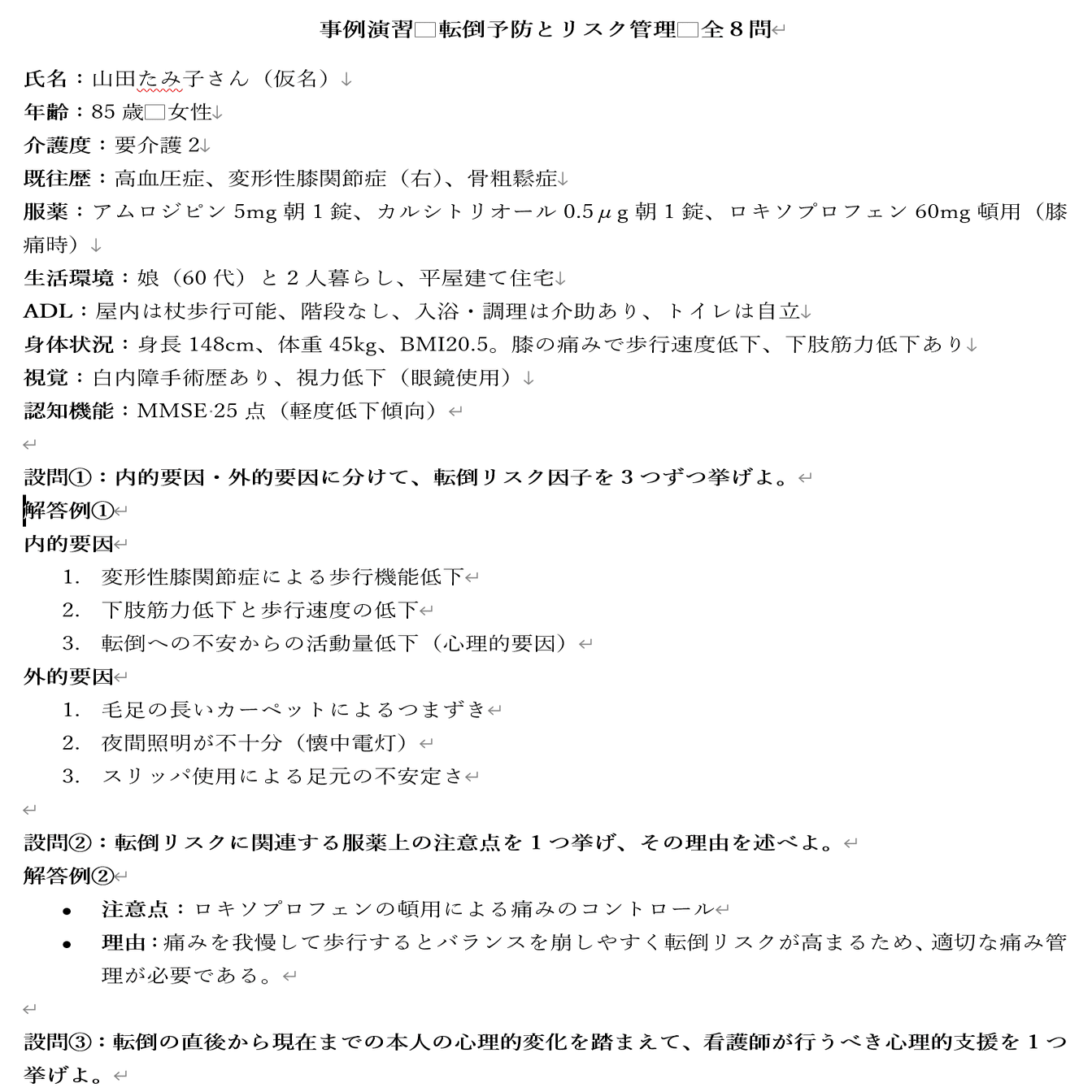 老年看護学Ⅰ(9回目)高齢者の転倒予防 <看護教員向け 授業案+学生用資料 Wordファイル>|看護教員の図書館
