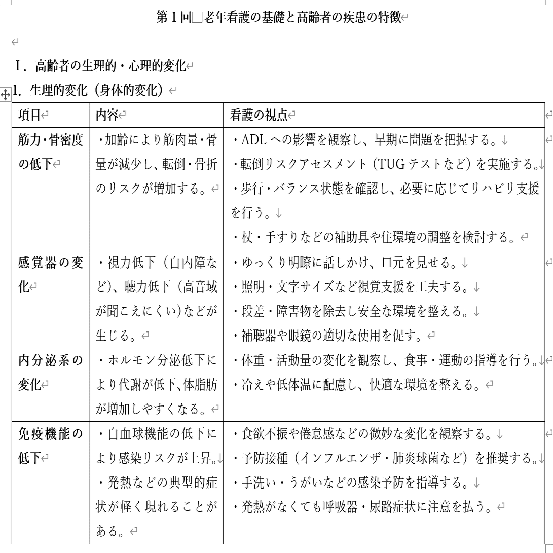 【無料DL】老年看護学Ⅱ 1回 老年看護の基礎と高齢者の疾患の特徴(看護教員向け 授業案+学生用資料 Wordファイル)