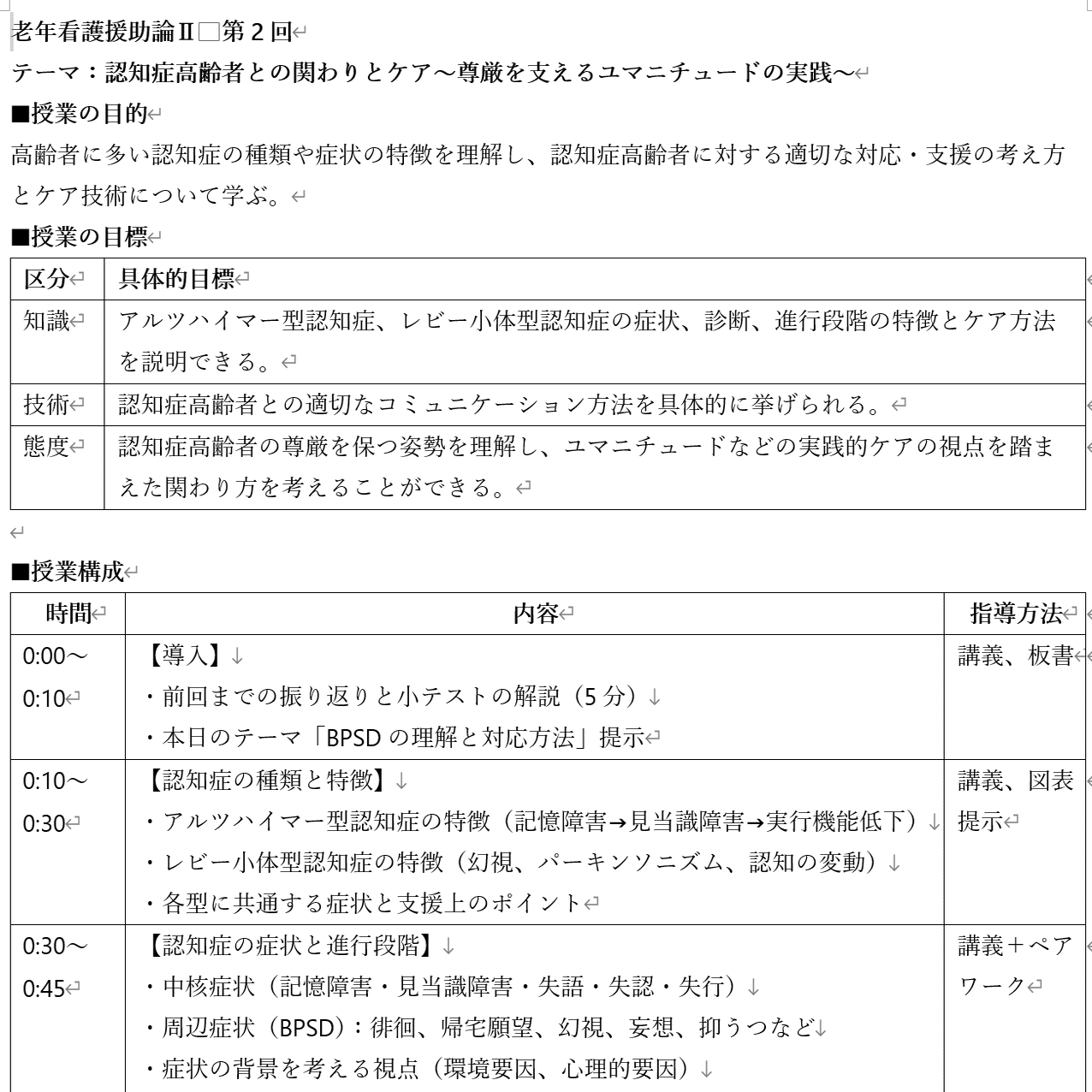 老年看護学Ⅱ(2回目)認知症ケアとユマニチュードを学ぶための実践教材【Word形式】|看護教員の図書館
