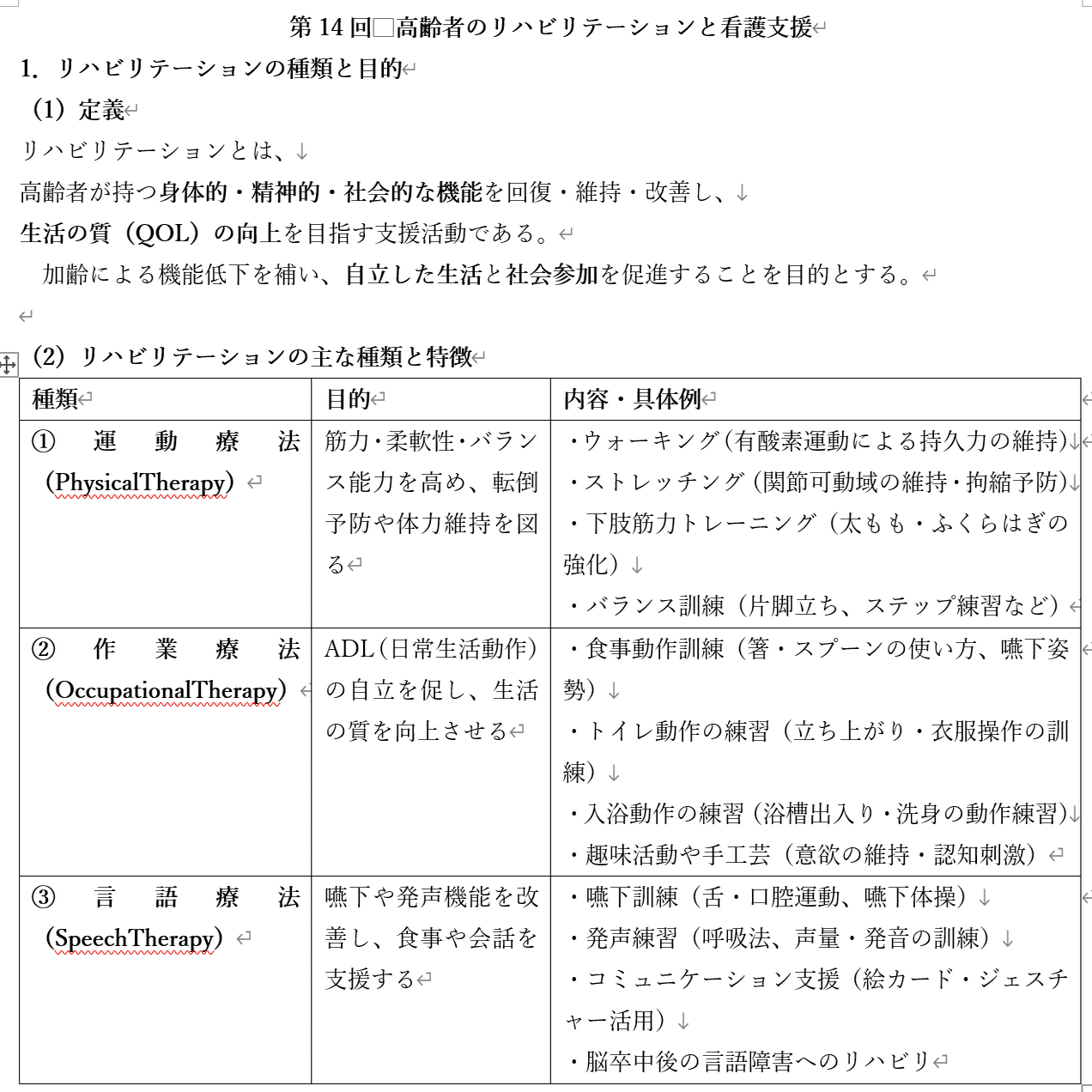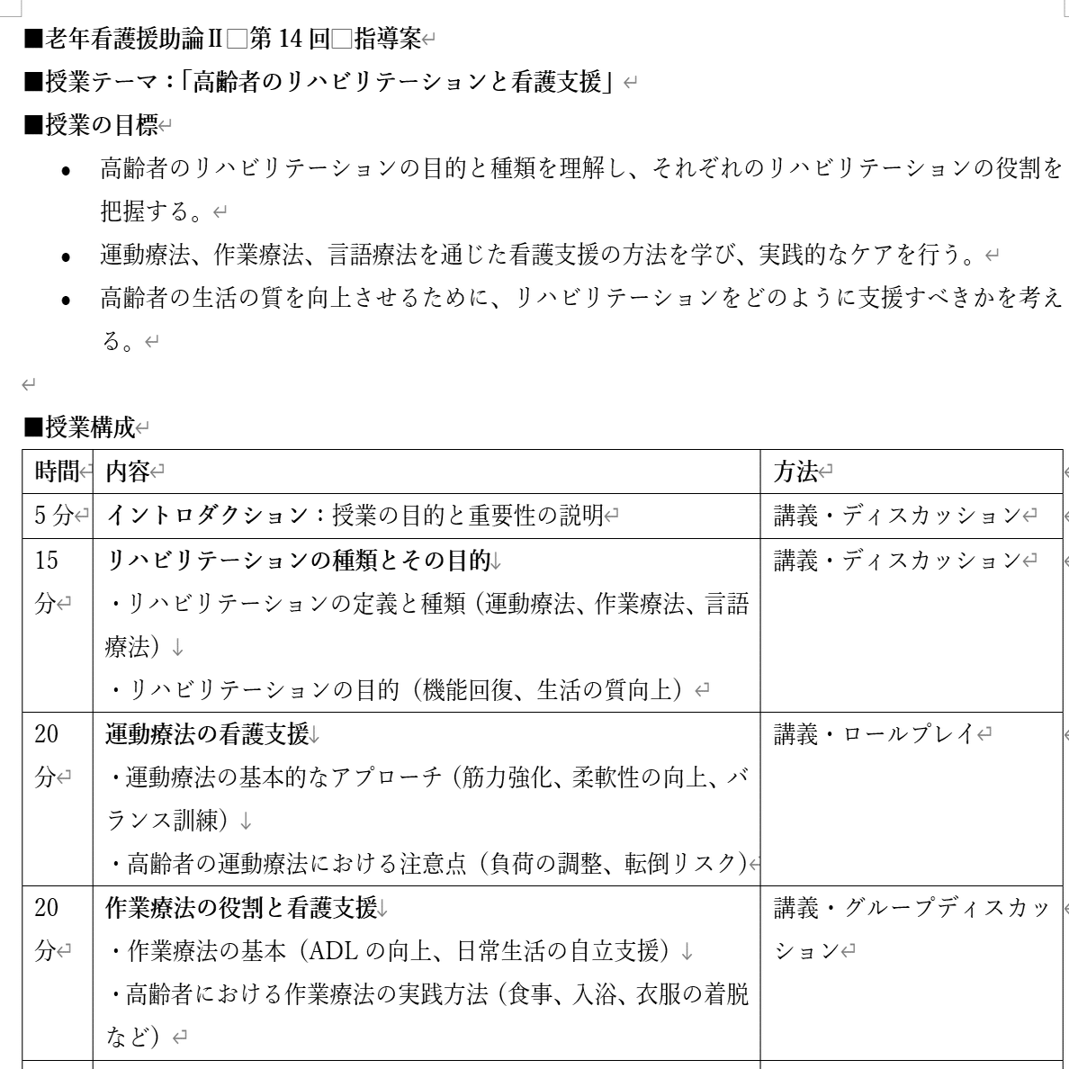 老年看護学Ⅱ(14回目)高齢者のリハビリテーションと看護支援<看護教員向け 授業案+学生用資料 Wordファイル>|看護教員の図書館