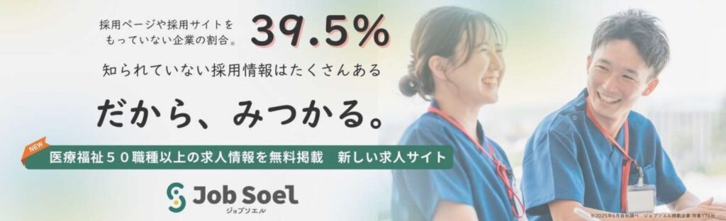 | ✨No.4✨ ジョブソエル | ★★★★☆ | ◎医療・介護・福祉全般をカバー 幅広い働き方の相談が可能 | |