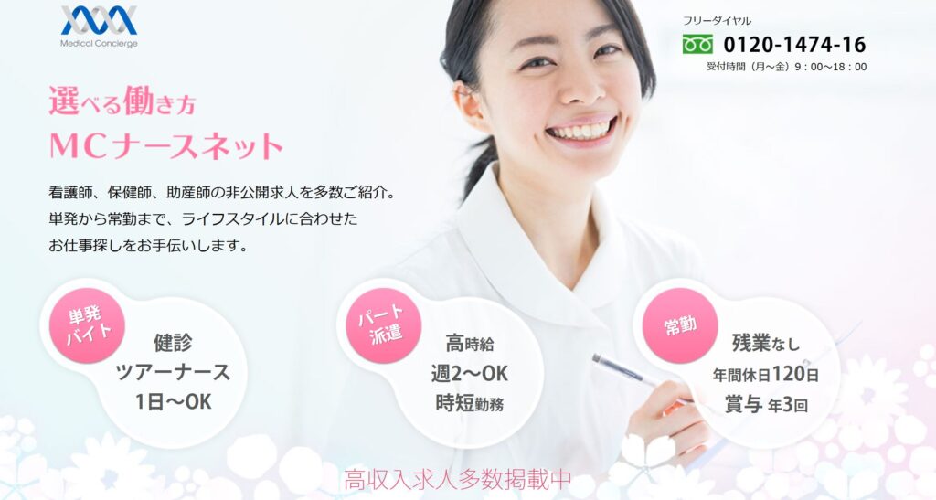 | ✨No.5✨ MCナースネット ![]() | ★★★★☆ | ◎単発・派遣求人が豊富 週1日など短時間勤務が可能な求人あり | |