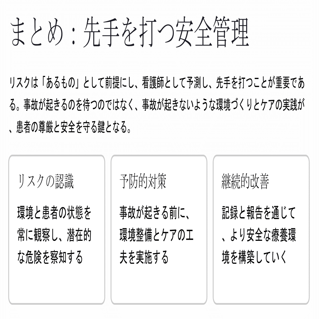 クリック👉基礎看護技術(安全・安楽・コミュニケーション)9回 療養環境における安全確保と事故予防の実践