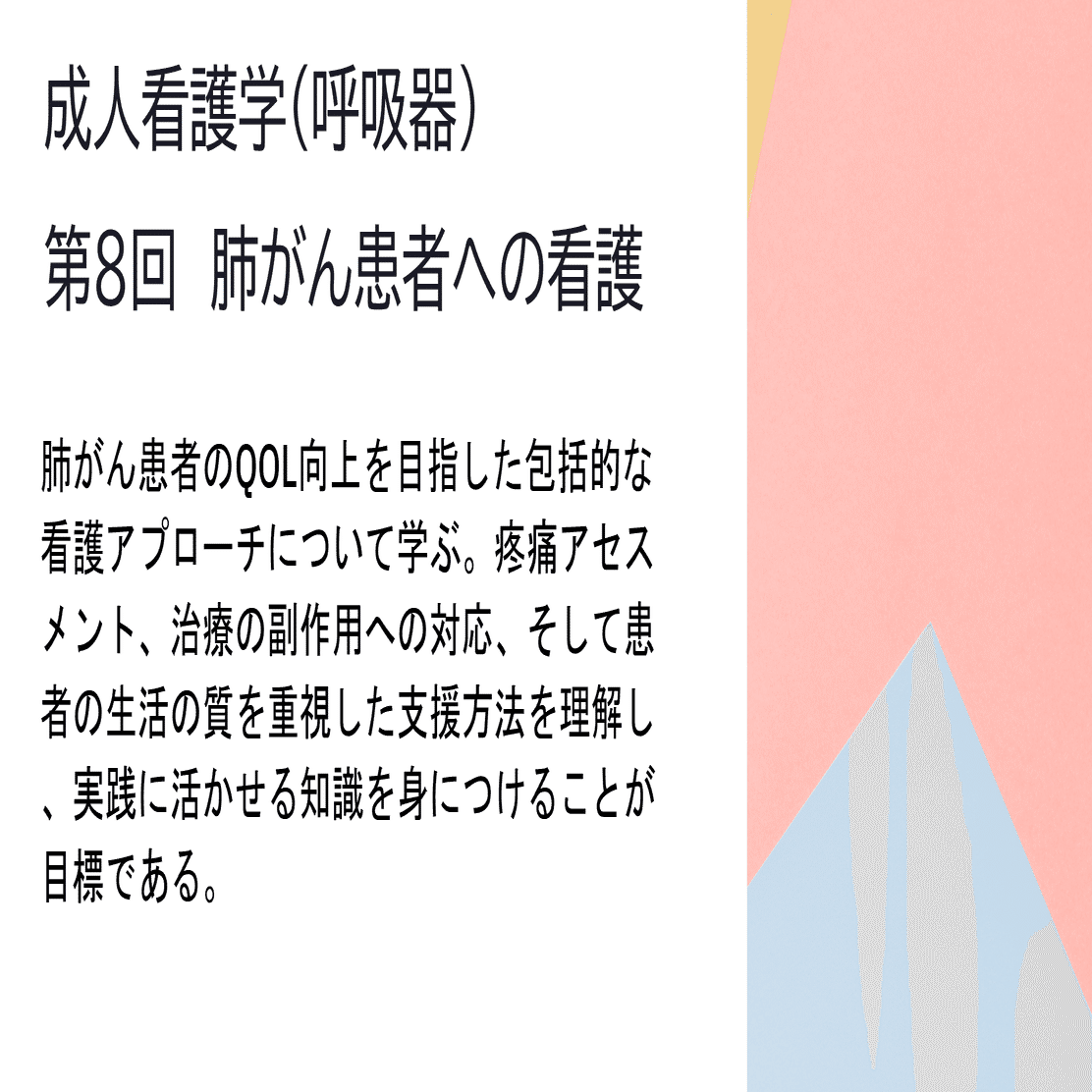 成人看護学(呼吸器)8回 肺がん患者への看護(看護教員用パワーポイント資料・全スライド20枚)|看護教員の図書館@授業案ダウンロード