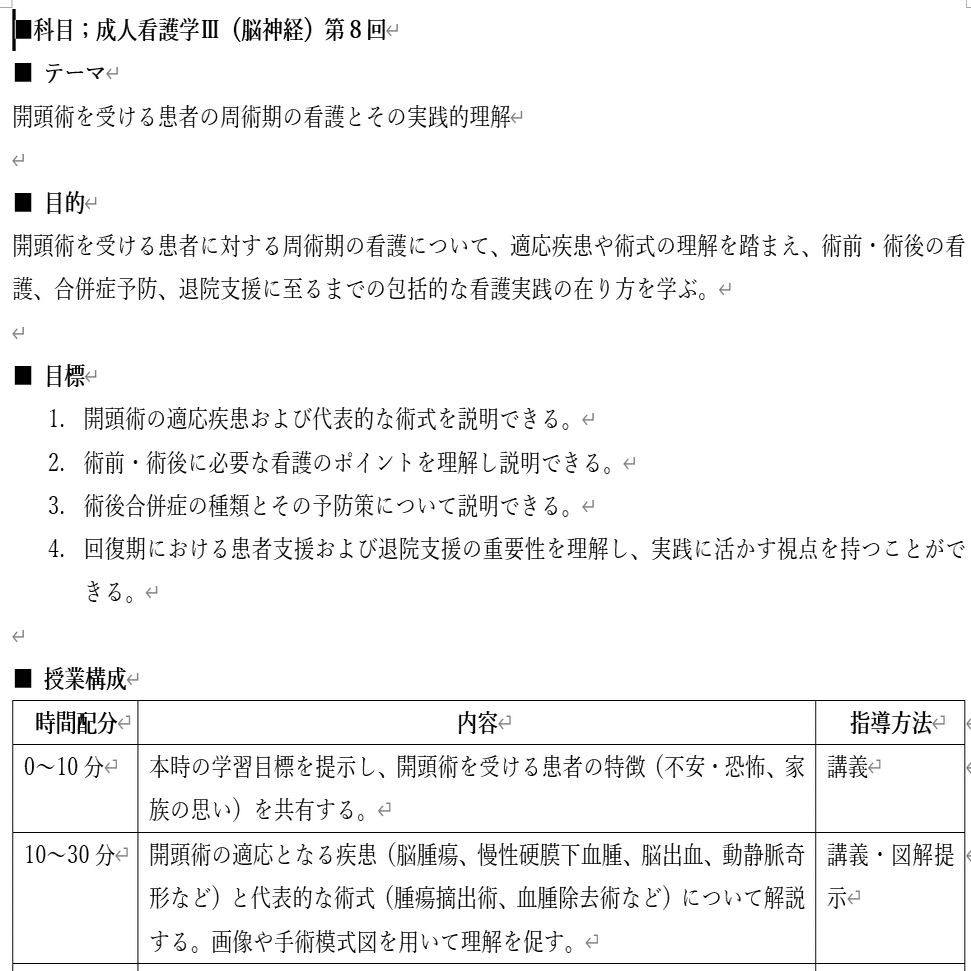 成人看護学(脳神経)8回 開頭術を受ける患者の周術期の看護とその実践的理解 <看護教員向け:Wordファイル>|看護教員の図書館@授業案ダウンロード