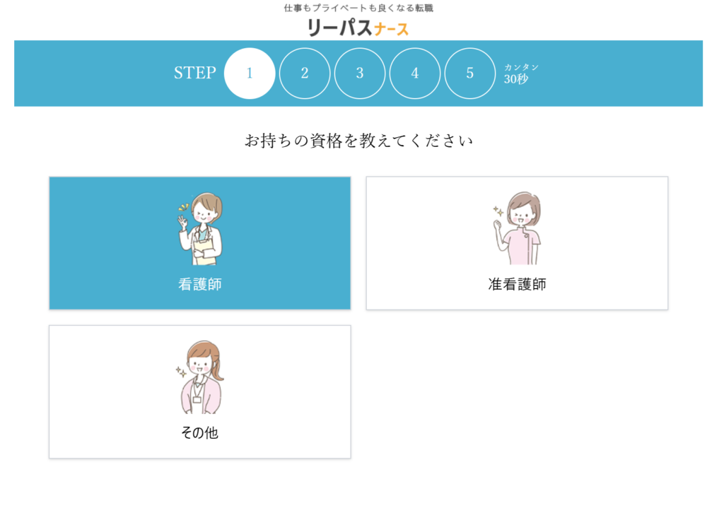 上記のフォームからリーパスナースへの申し込みは、たったの30秒で完了します。入力情報は公開されず、安心して利用できます。