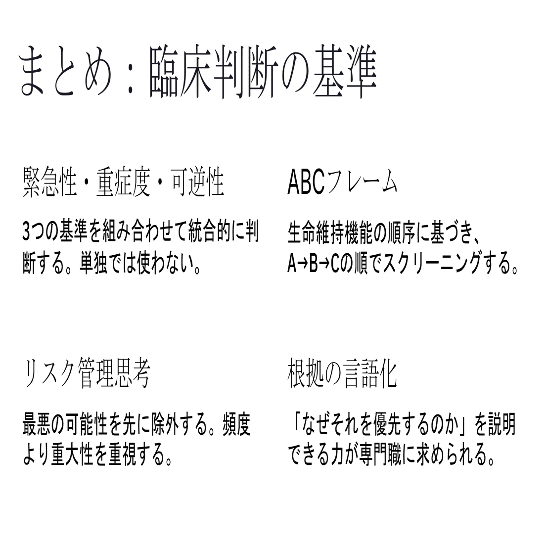 ▶ Wordファイルのダウンロード👉臨床推論・臨床判断 4回 臨床判断の基準