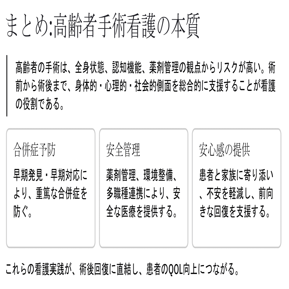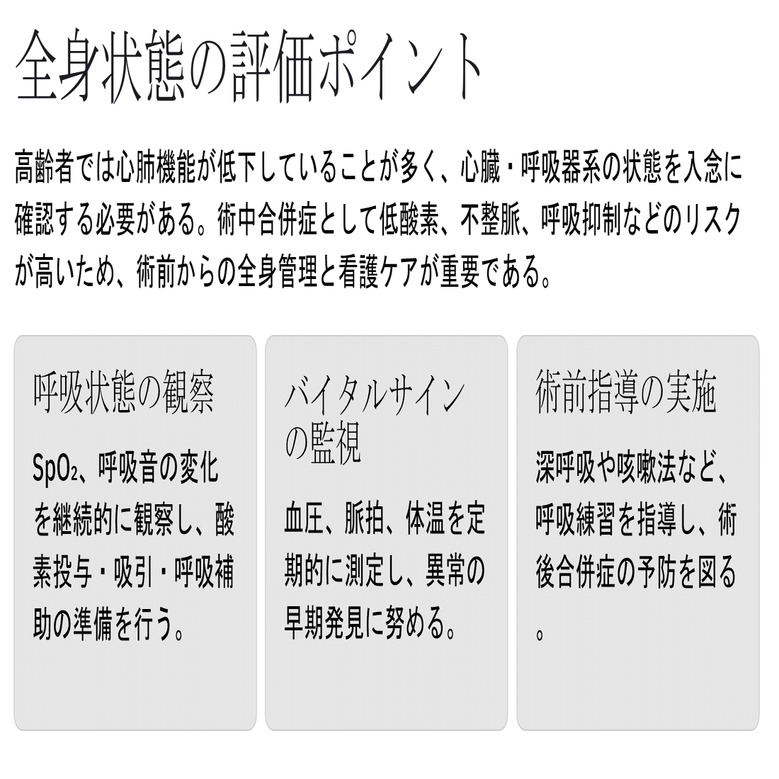 老年看護学Ⅱ(疾患論)13回 高齢者の手術前後の評価と看護ケア(看護教員用パワーポイント資料・全スライド20枚)|看護教員の図書館@授業案ダウンロード