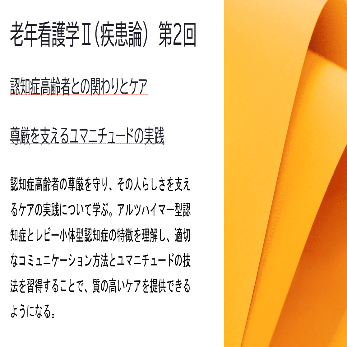 老年看護学Ⅱ(疾患論)2回 認知症ケアとユマニチュード(看護教員用パワーポイント資料・全スライド20枚)|看護教員の図書館@授業案ダウンロード