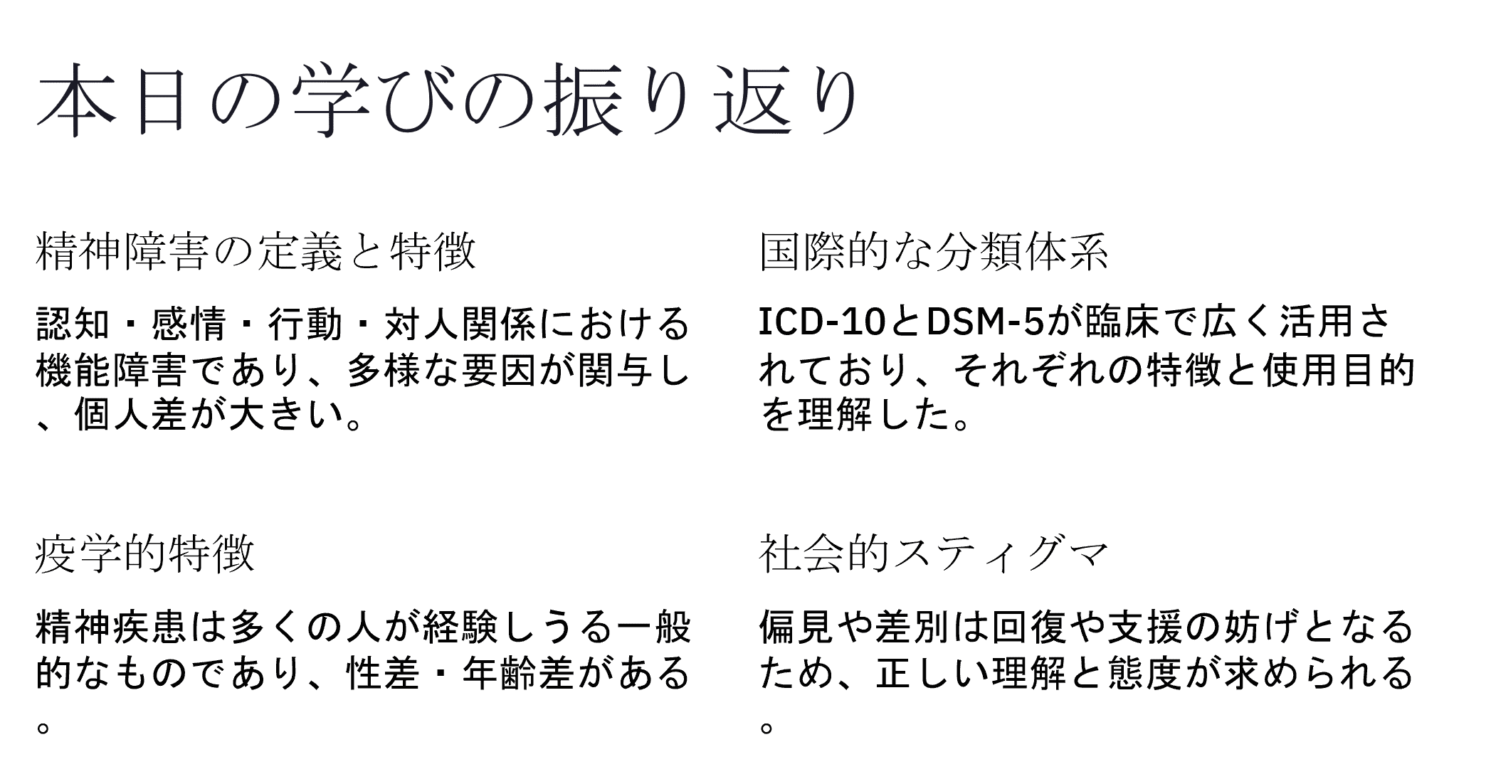 👉【無料DL】精神看護学Ⅱ(疾患論)1回 精神疾患の基礎理解と分類体系の把握