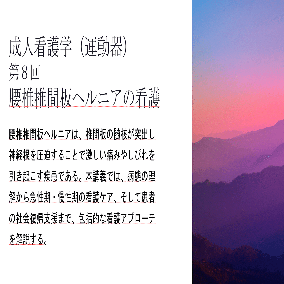 クリック👉成人看護学Ⅲ(運動器)8回 腰椎椎間板ヘルニアの病態理解と看護の実践 <看護教員向け:Wordファイル>