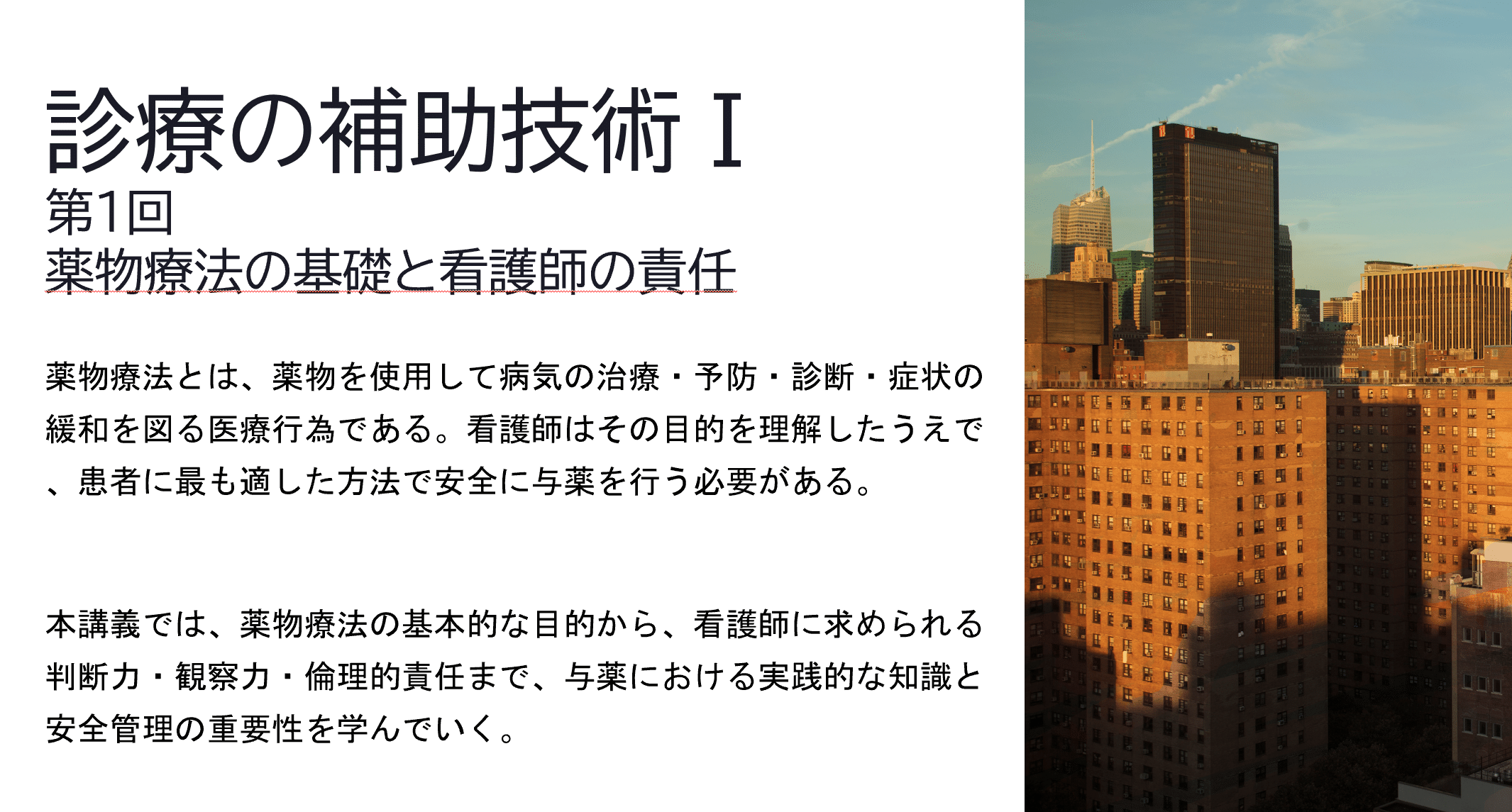 クリック👉【無料DL】診療の補助技術Ⅰ(与薬)1回 薬物療法の基礎と看護師の責任