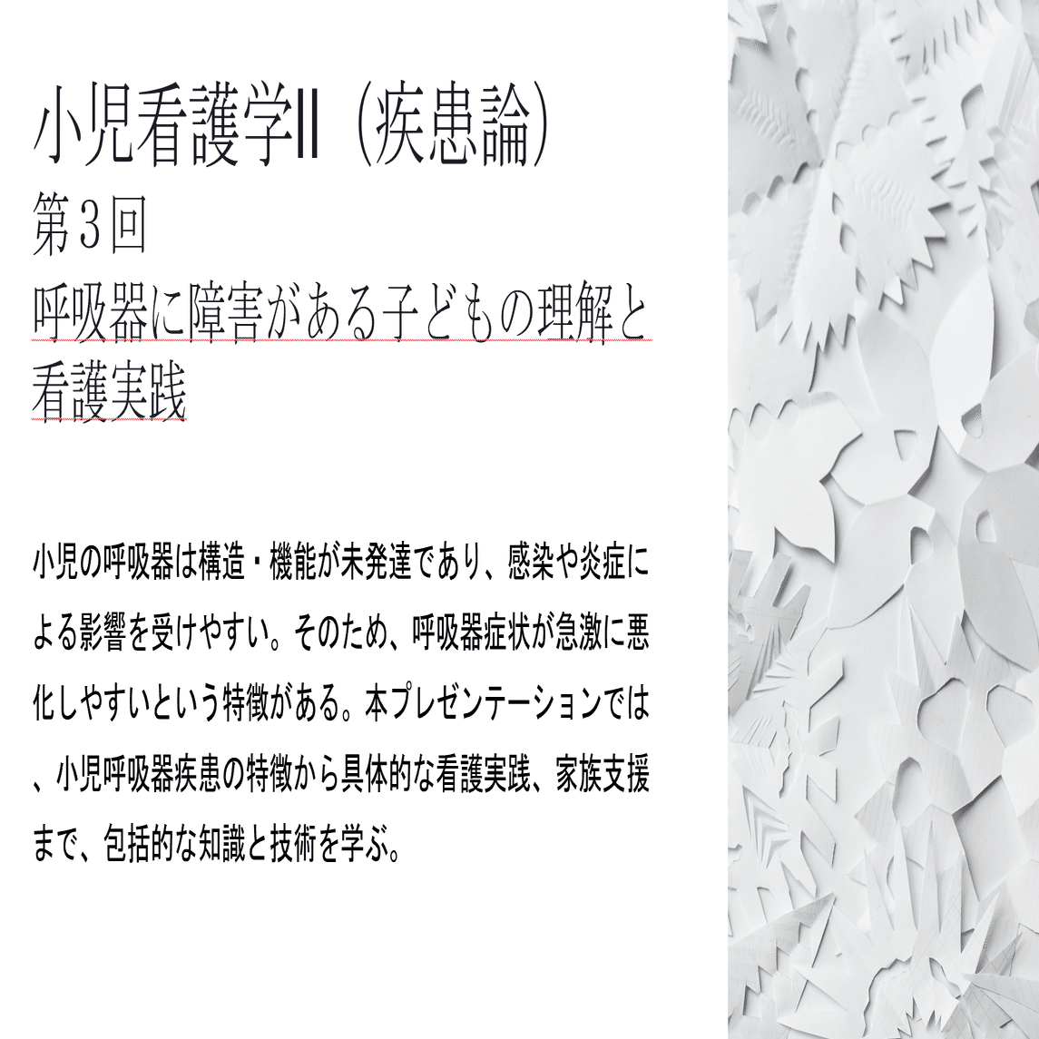 小児看護学Ⅱ(疾患論)3回 呼吸器に障害がある子どもの理解と看護実践(看護教員用パワーポイント資料・全スライド20枚)|看護教員の図書館@授業案ダウンロード