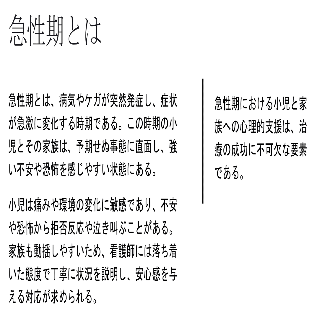 クリック👉小児看護学Ⅰ(日常生活の援助)7回 病期に応じた看護(急性期・慢性期・終末期・災害時)