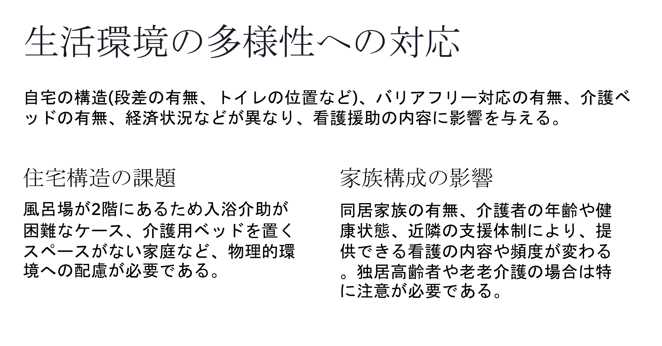 クリック👉【無料DL】在宅看護論Ⅰ(日常生活の援助)1回 在宅看護の基本と療養者の生活理解