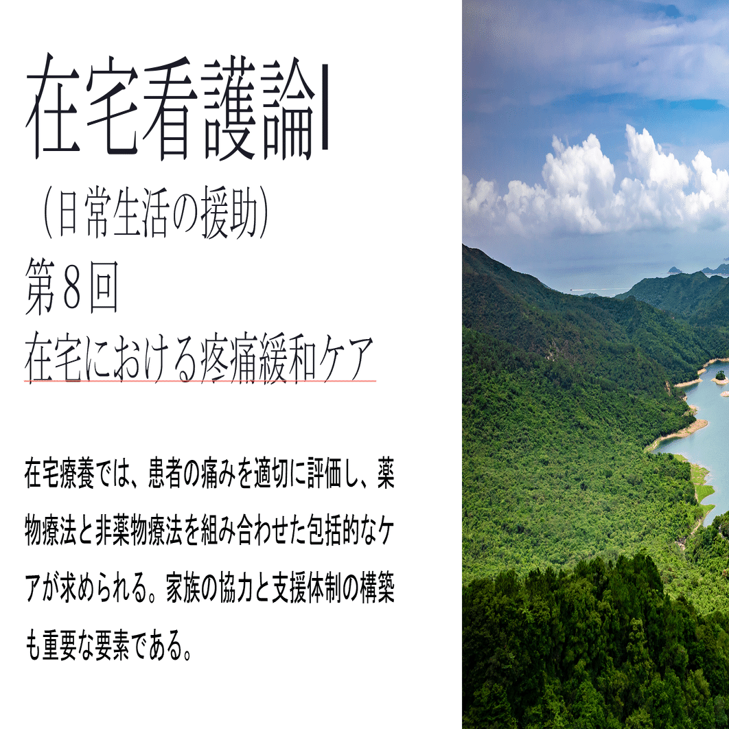 在宅看護論Ⅰ(日常生活の援助)8回 在宅における疼痛緩和ケア(看護教員用パワーポイント資料・全スライド20枚)|看護教員の図書館@授業案ダウンロード